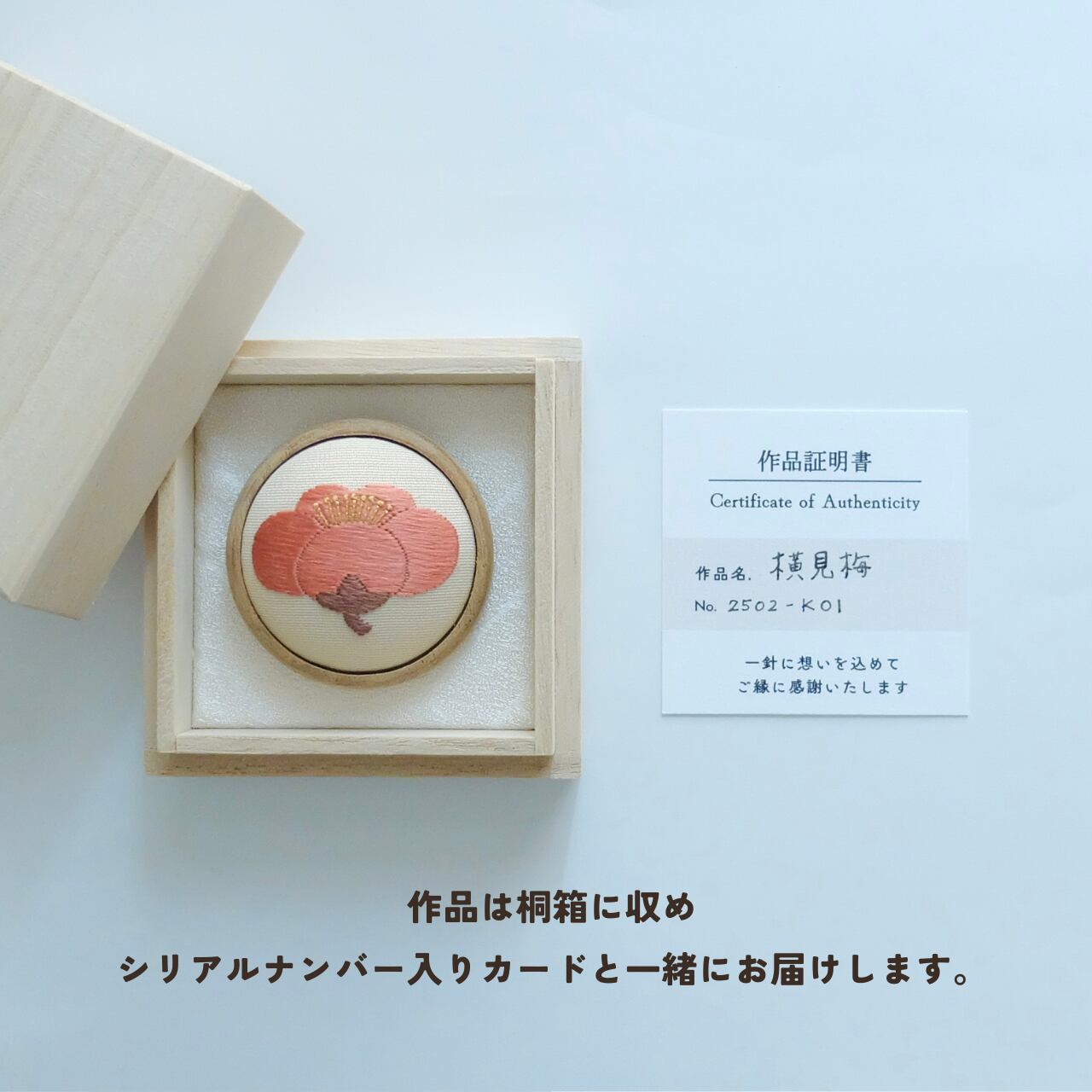 ・作品は桐箱に収め、シリアルナンバー入りカードと一緒にお届けします。