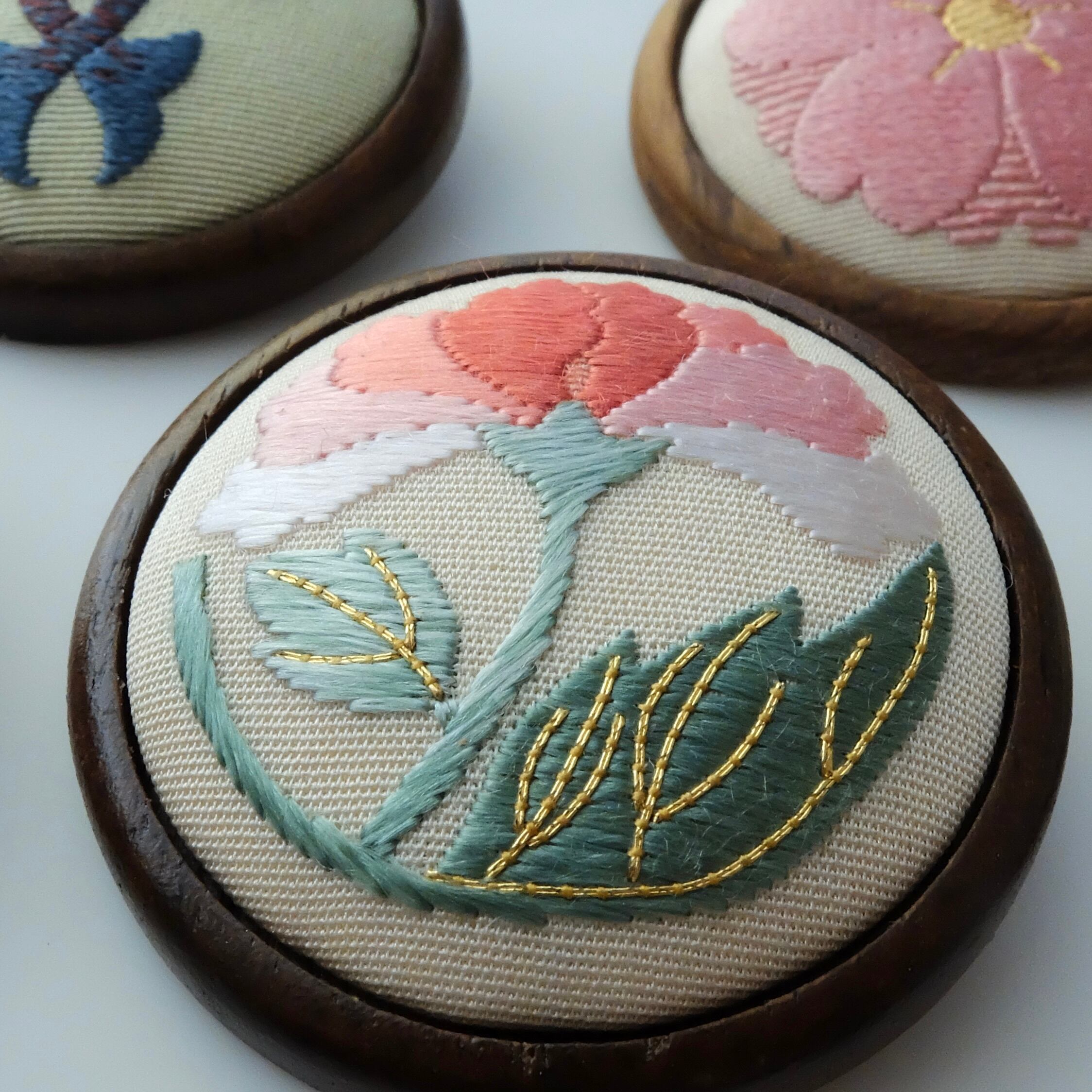 家紋刺繍【葉敷乱牡丹】ブローチ