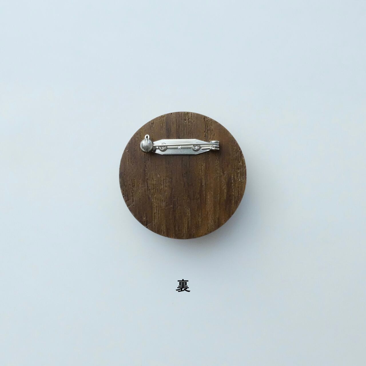 落ち着いた焦茶のブローチに仕立てたことで、柔らかな装いにも、格好良いスタイルにもしっくりと馴染む、包容力のある作品です。