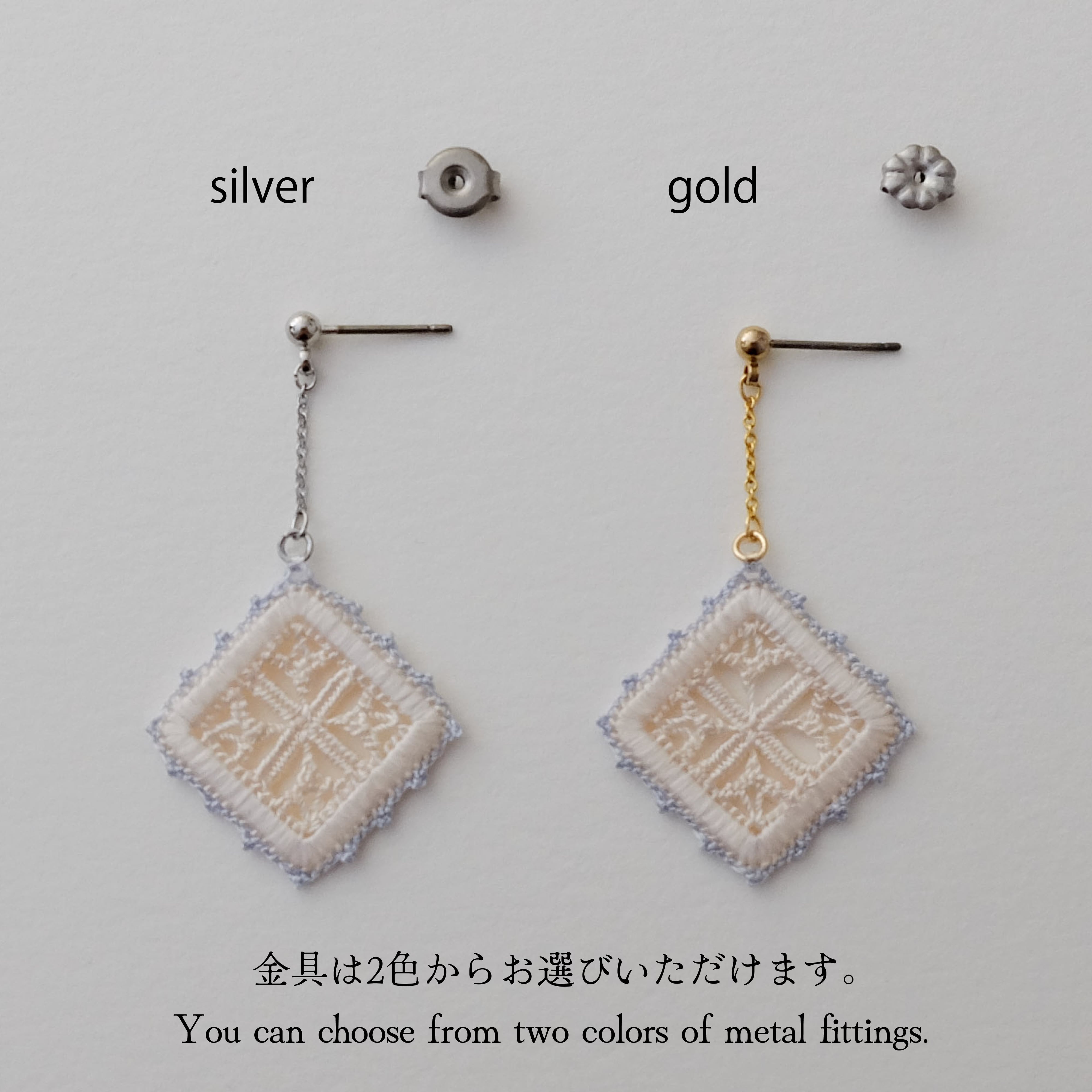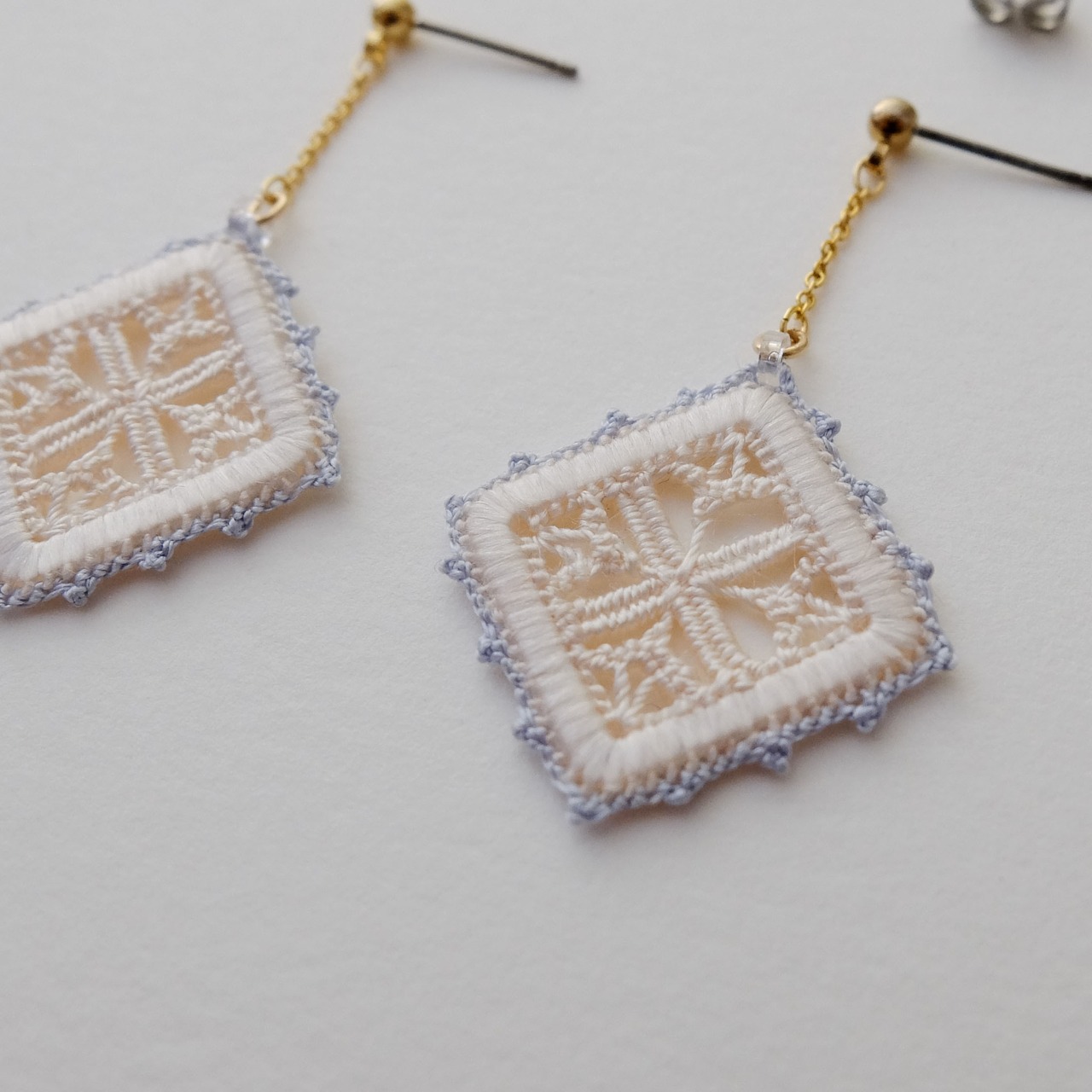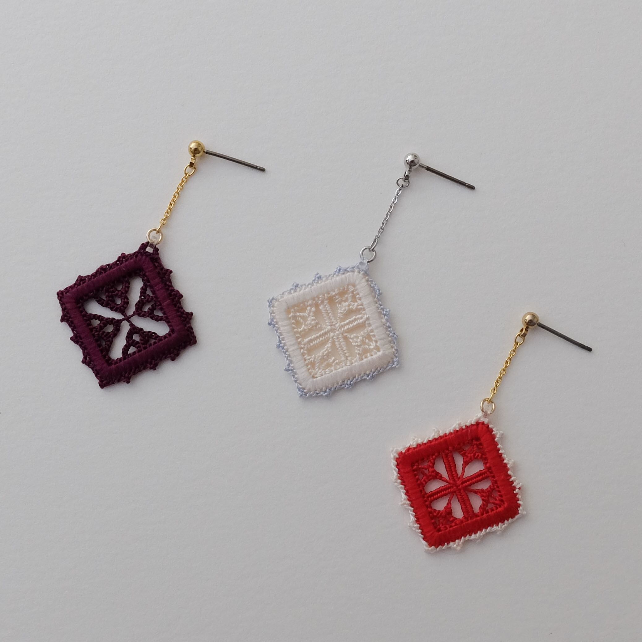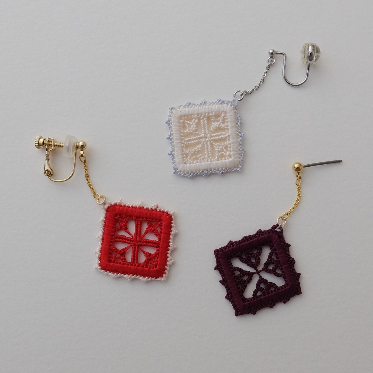 そんな刺繍モチーフがゆらゆら揺れるイヤリングは、身につけるとなんだかちょっとワクワクしてきます。
